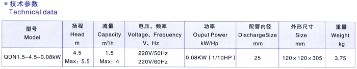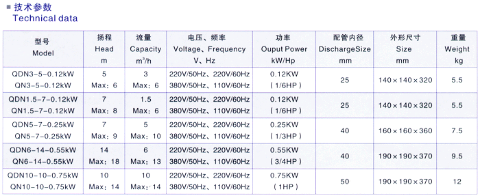 1、QDN型系列微型不銹鋼潛水泵;流量、揚(yáng)程、自吸高度