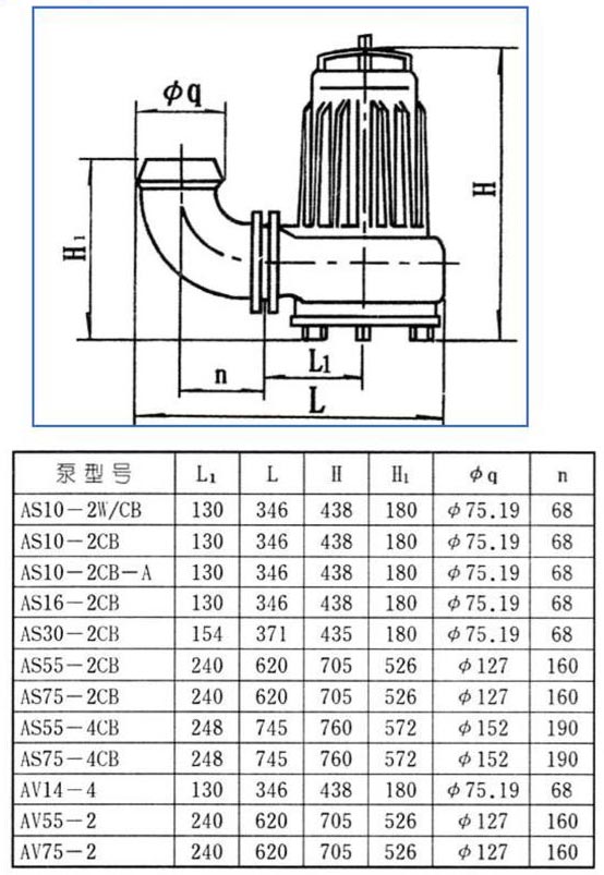 八、AS、AV型系列潛水排污泵外形尺寸